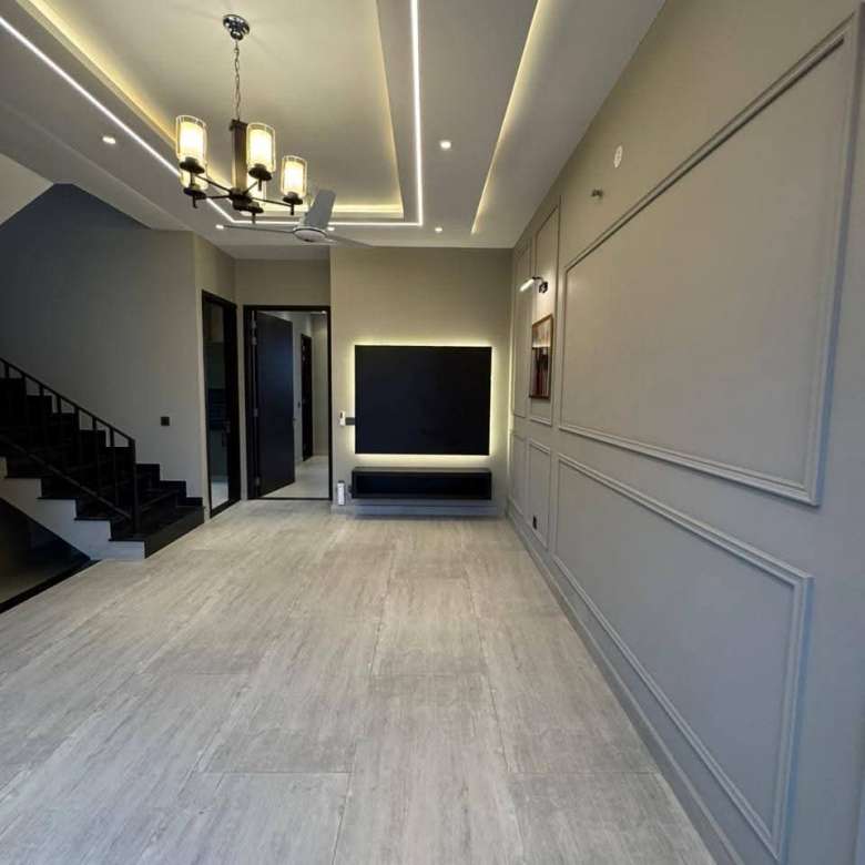 This 5 Marla house is available for sale in DHA Phase 9 Town, Lahore. It includes 3 bedrooms with attached washrooms, a powder room, and a TV lounge designed for comfortable family living.