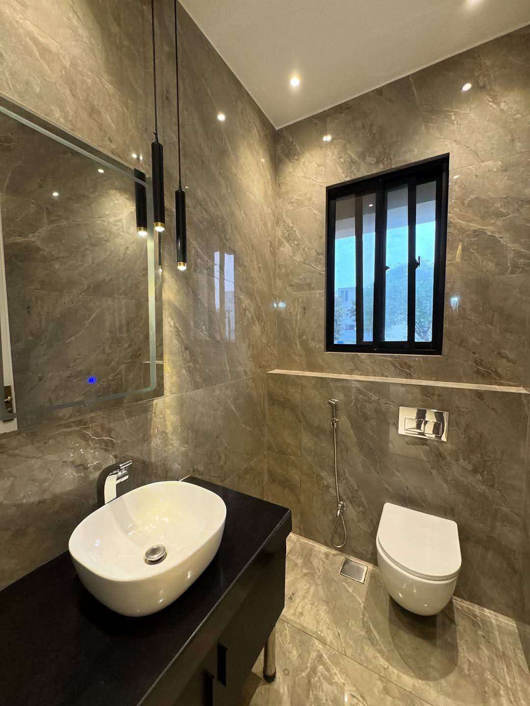 This 5 Marla house is available for sale in DHA Phase 9 Town, Lahore. It features 3 bedrooms with attached washrooms, a powder room, and a comfortable TV lounge.