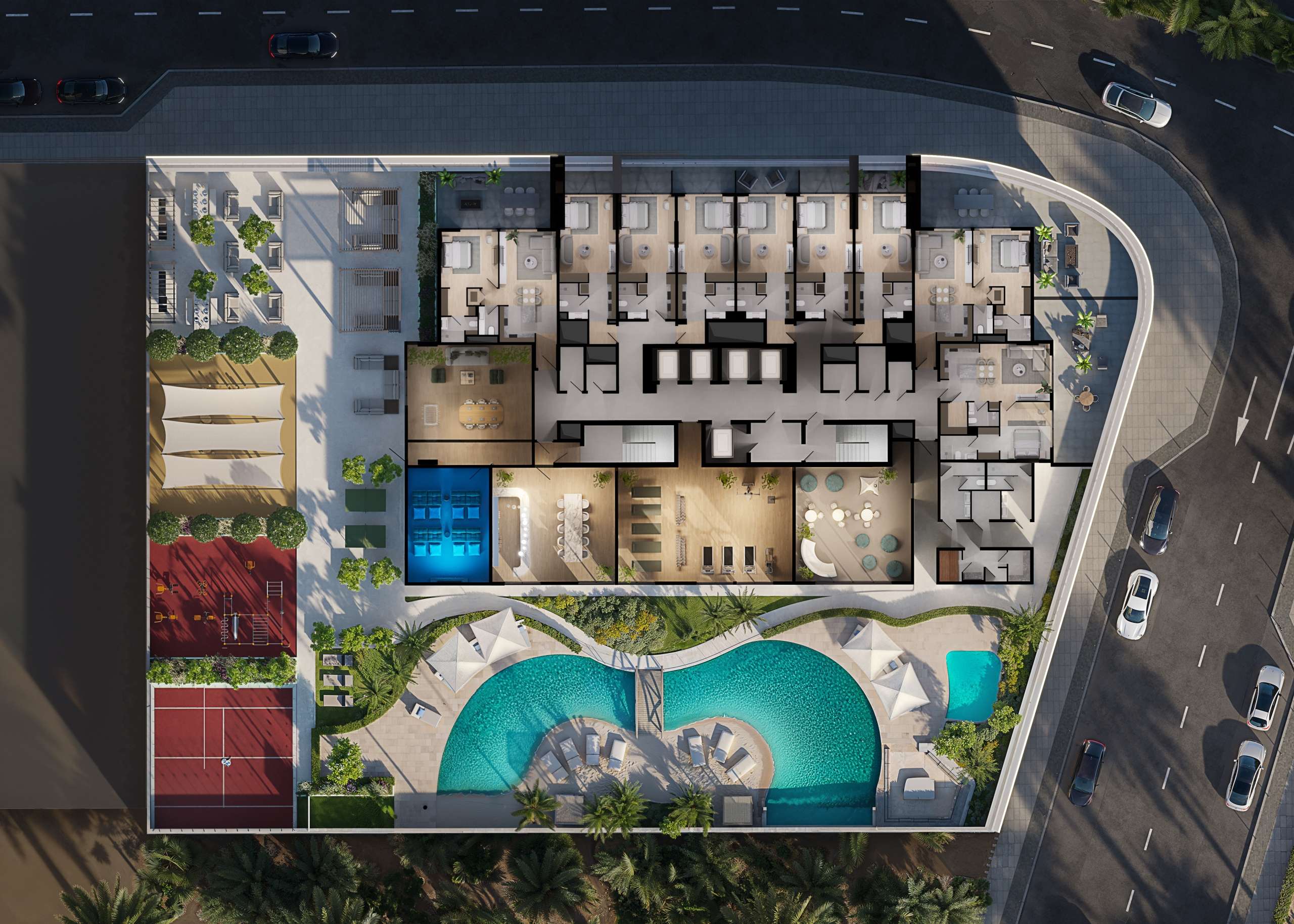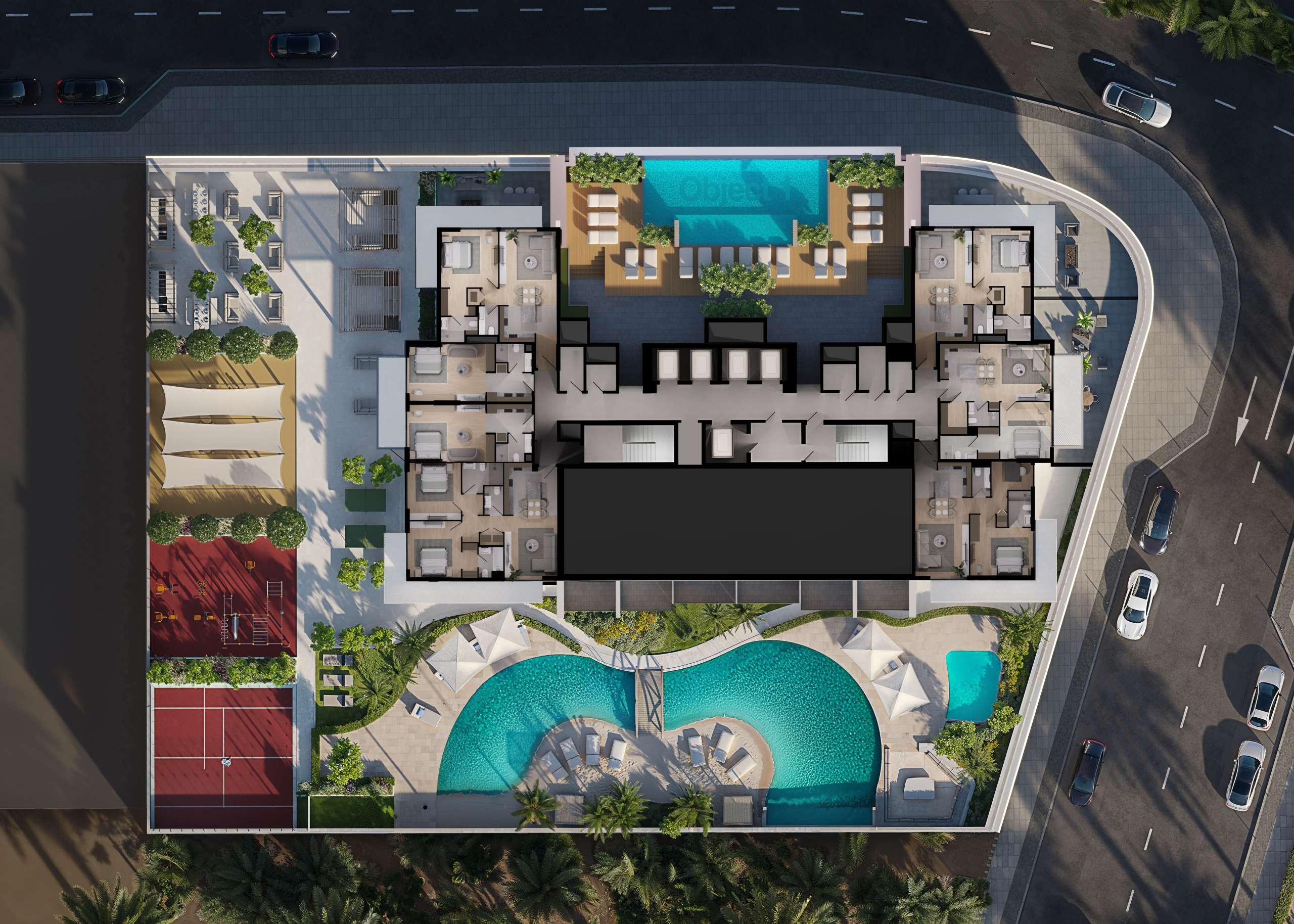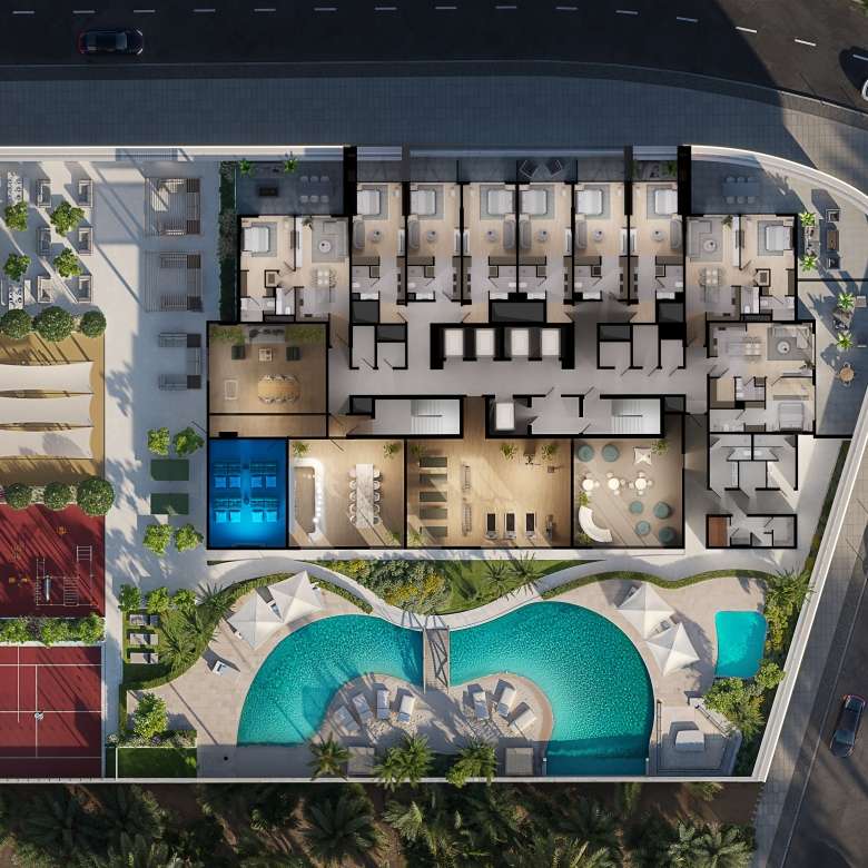The project (B+G+5P+23F+R) features a diverse collection of 343 residences, including Studios, 1, 1.5, 2, 2.5, and 3-Bedroom apartments. Residents can indulge in over 30 world-class amenities, ranging from a lagoon-style pool with a sandy beach deck on the podium to a breathtaking Sky Infinity Pool on the 15th floor.