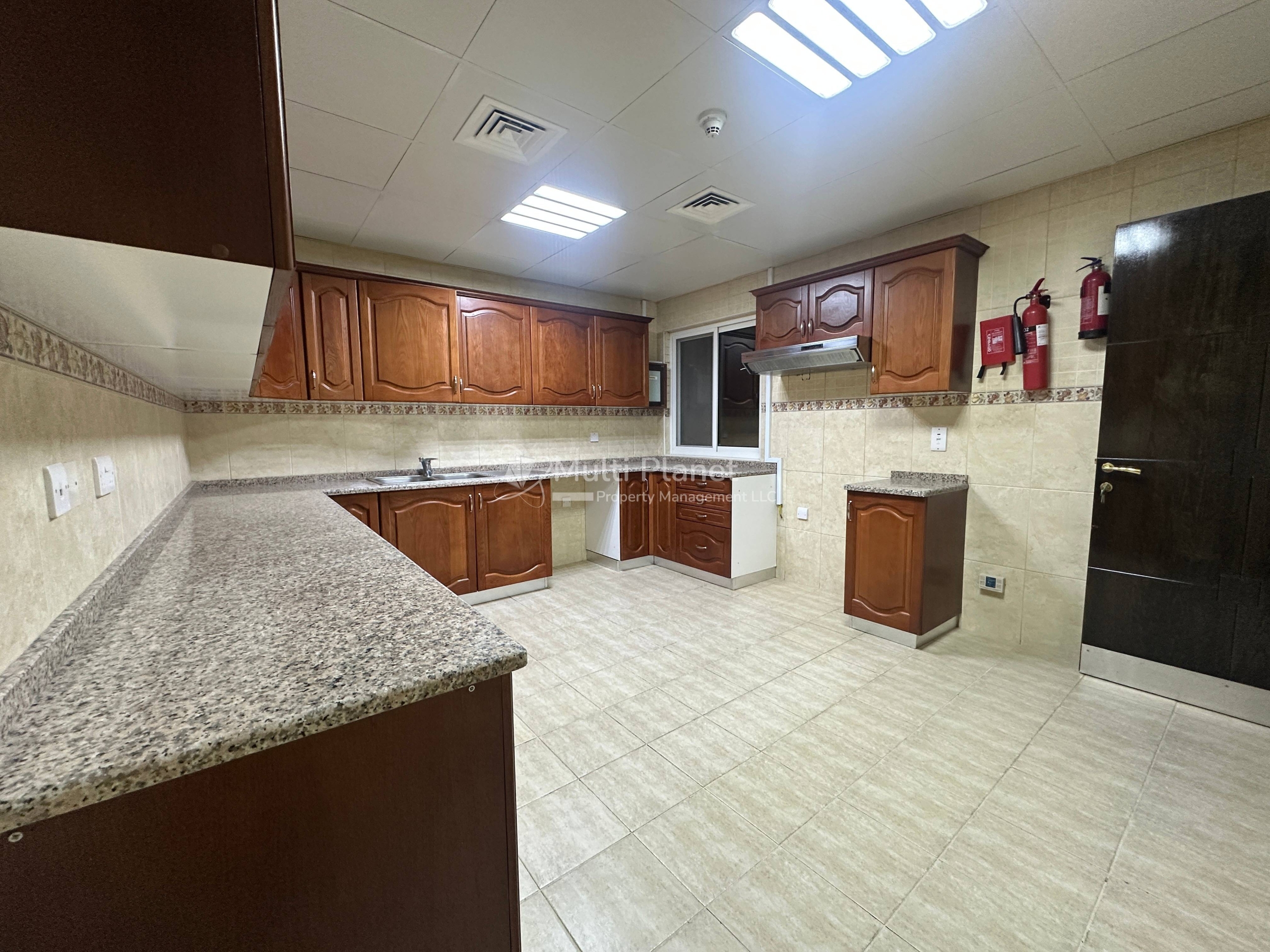 -Modern kitchen with ample storage space